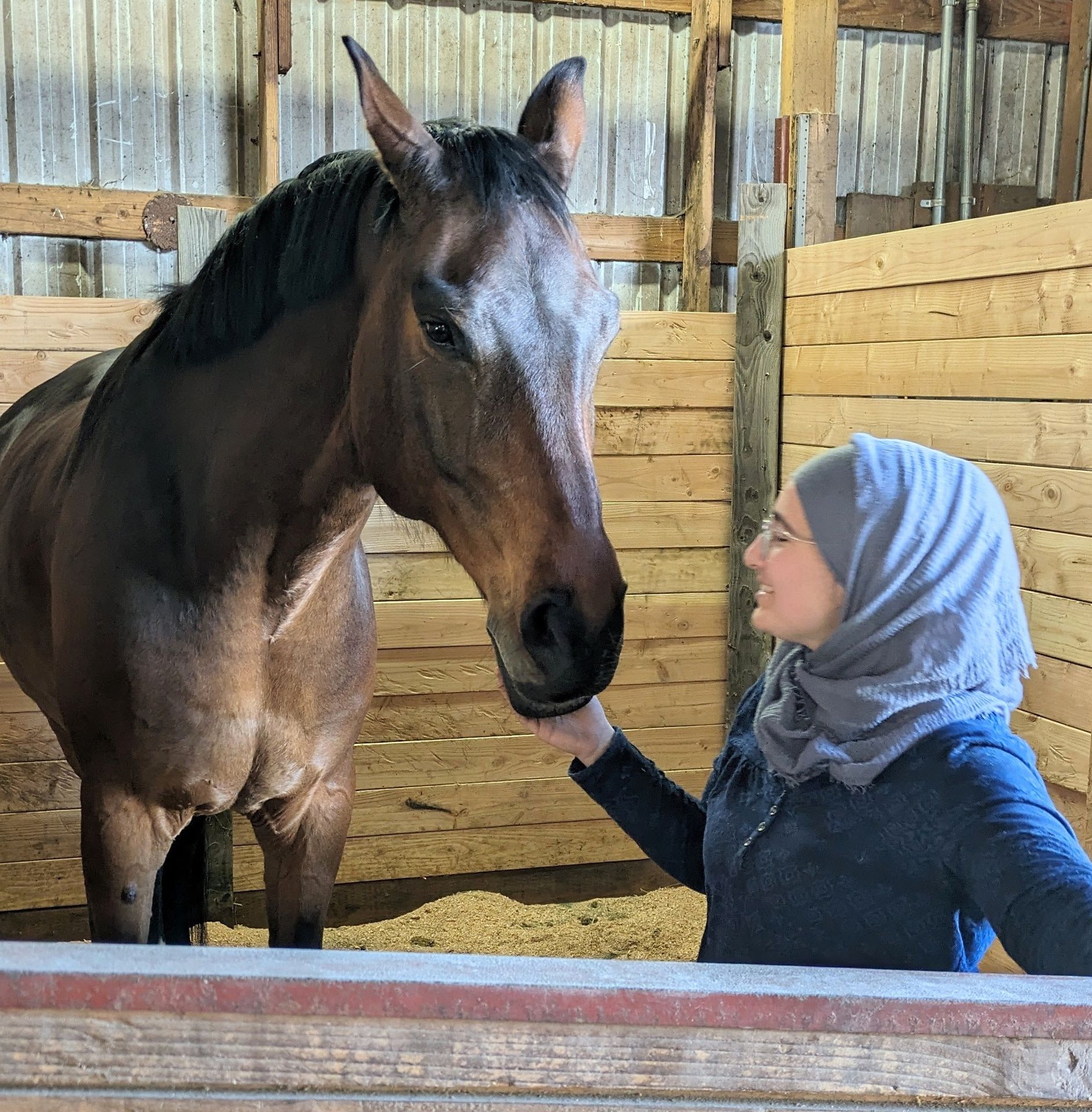 When she isn't "squishing horses" as her kids put it, she enjoys dressage and R+ training.